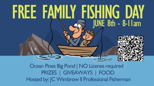 Join us for Family Fishing Day! This is a FREE family fun event at the Ocean Pines Big pond THIS Saturday, June 8th from 8-11am!