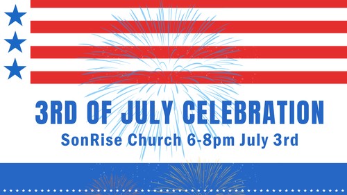 Mark your calendars for our Fireworks Celebration on July 3rd at SonRise Church! There will be food, popcorn, snow cones, face painting, games, music, and inflatables from 6-8pm then join us on the lawn for the Berlin Fireworks!!